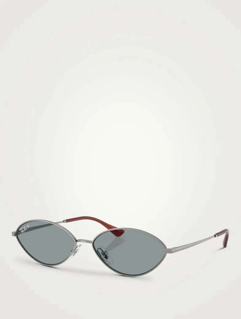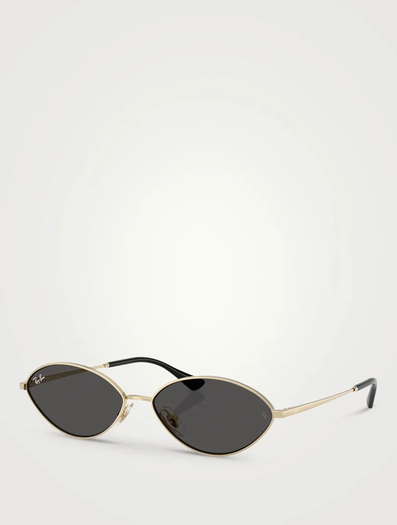 These oval sunglasses are constructed with a sleek metal frame. The standard size fits comfortably on most wearers, making them suitable for everyday use. Style is Rx-able.