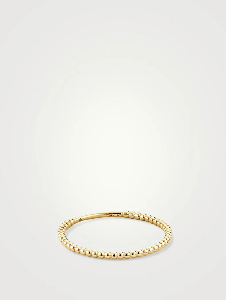 The Beaded Ring creates a big enough statement to wear alone, but it also plays well with others. It is handcrafted in 14K gold finished in rhodium plating and is 1.3 mm, thick which makes it durable to wear through any activity, from morning runs to swimming laps.