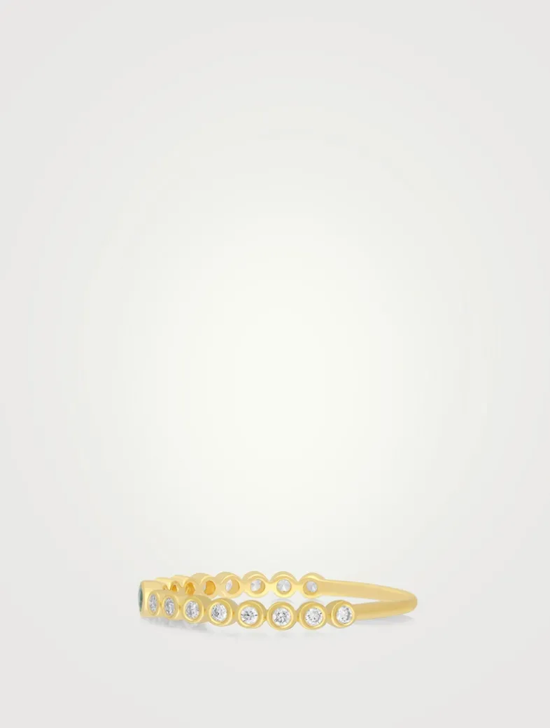 Centred with a marquise-cut tsavorite, this ring is flanked with sparkling bezel-set diamonds along the front half of the band.