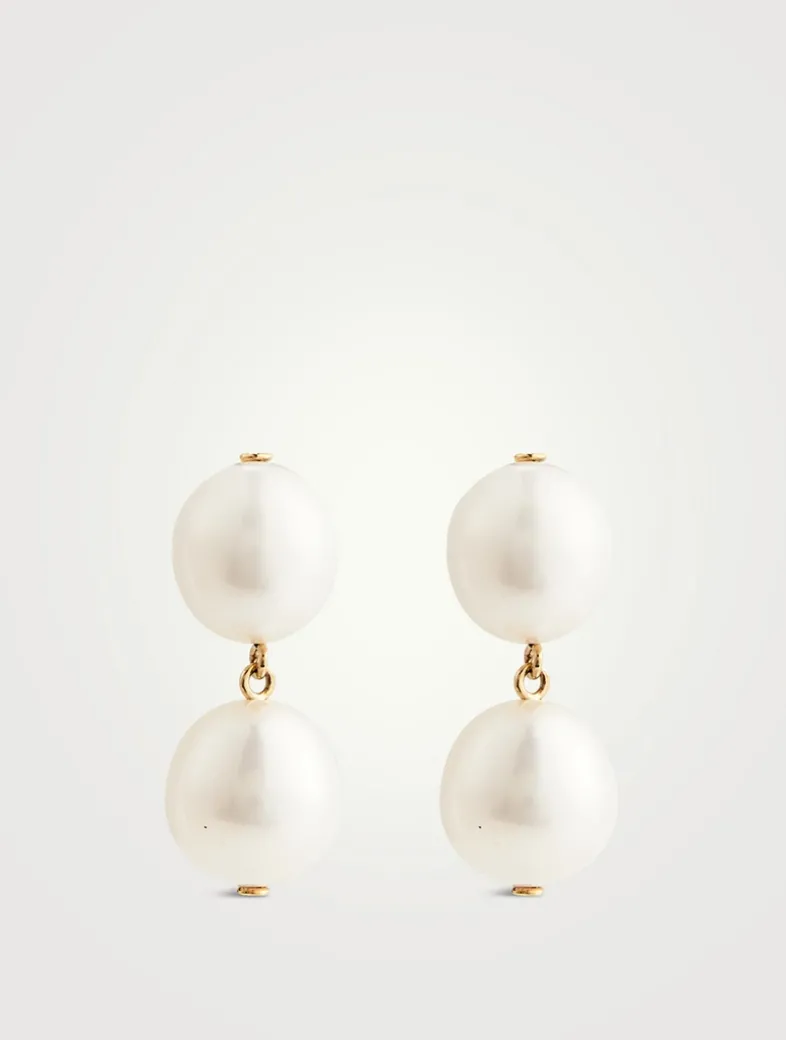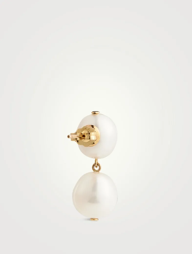 Handcrafted in Vancouver, Canada, these double drop earrings showcase dangling oval-shaped pearls.