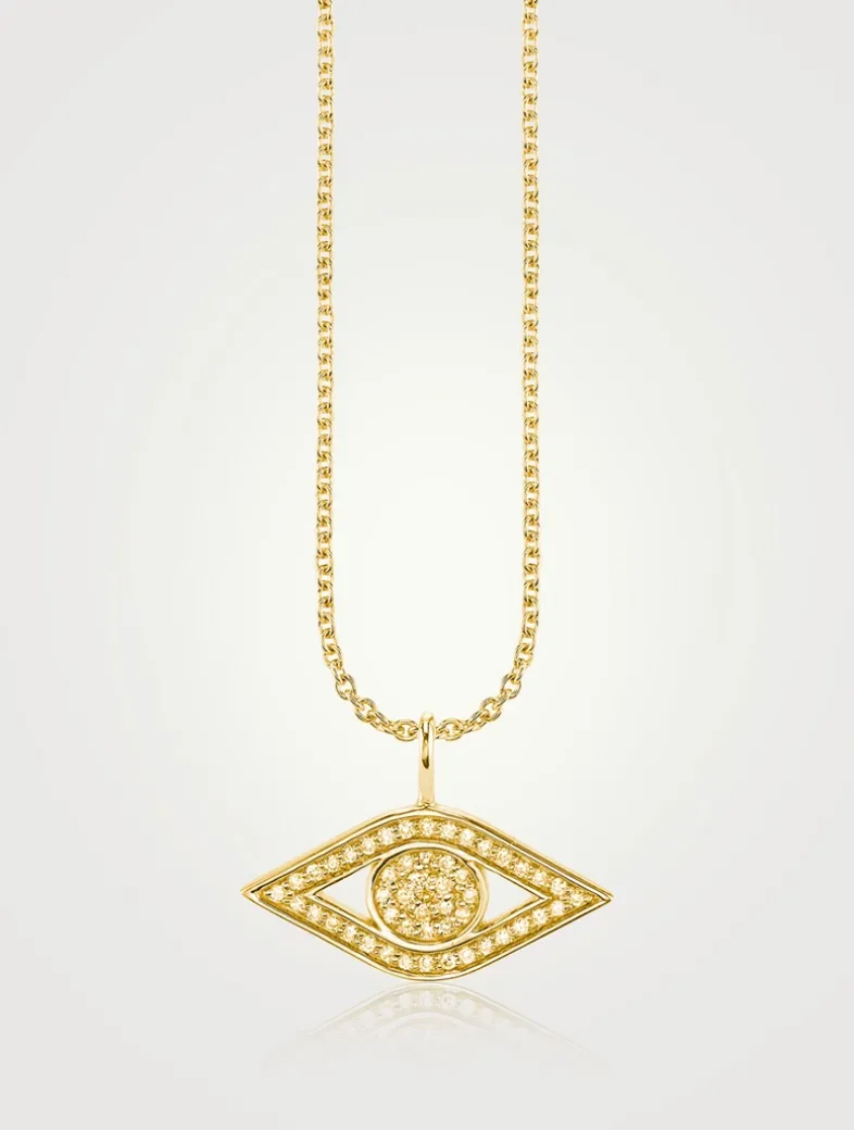 Symbolizing protection and good fortune, this 14k gold evil eye necklace shimmers with pavé-set diamonds.