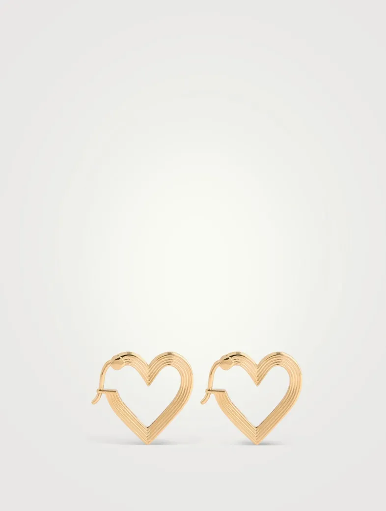 These exquisite 14k gold fluted heart huggie hoops feature a light-catching heart motif and crafted for durable, timeless elegance that complements any look.
