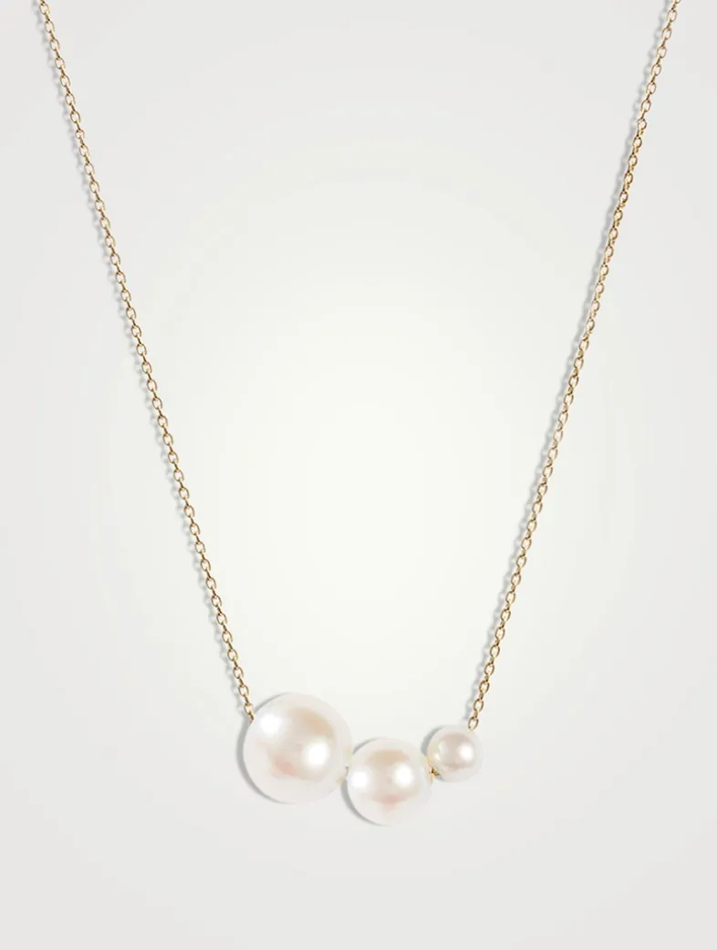 Handcrafted in Vancouver, Canada from 14-karat gold, this delicate necklace is anchored with three luminous pearls in graduated sizes for an elegant, balanced look.