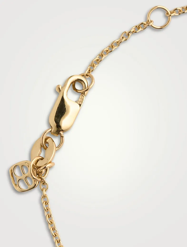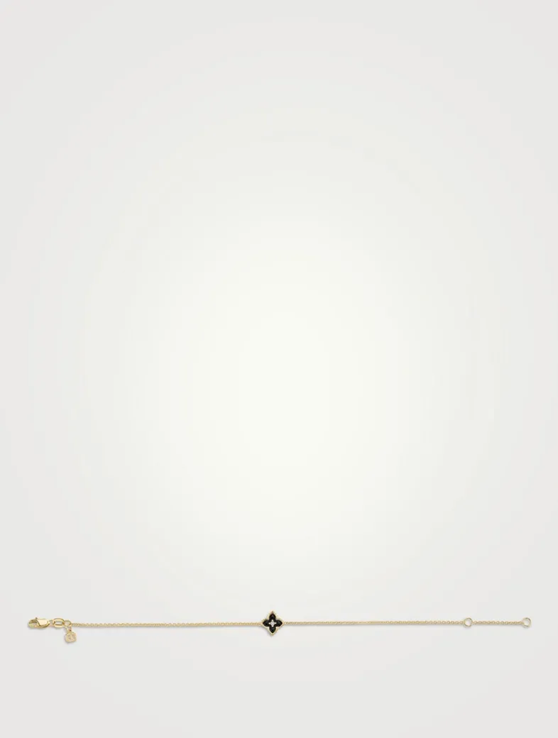 Crafted with the brand’s fine 14k gold cable chain, this bracelet features a 14k gold enamel Moroccan flower charm centred with a single bezel-set diamond.
