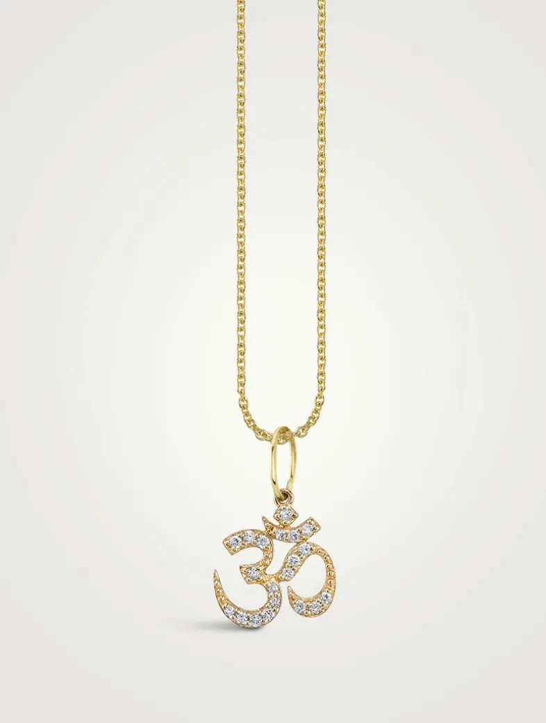Made with a classic cable chain, this necklace features an spritually symbolic OM pendant encrusted with sparkling pavé diamonds.