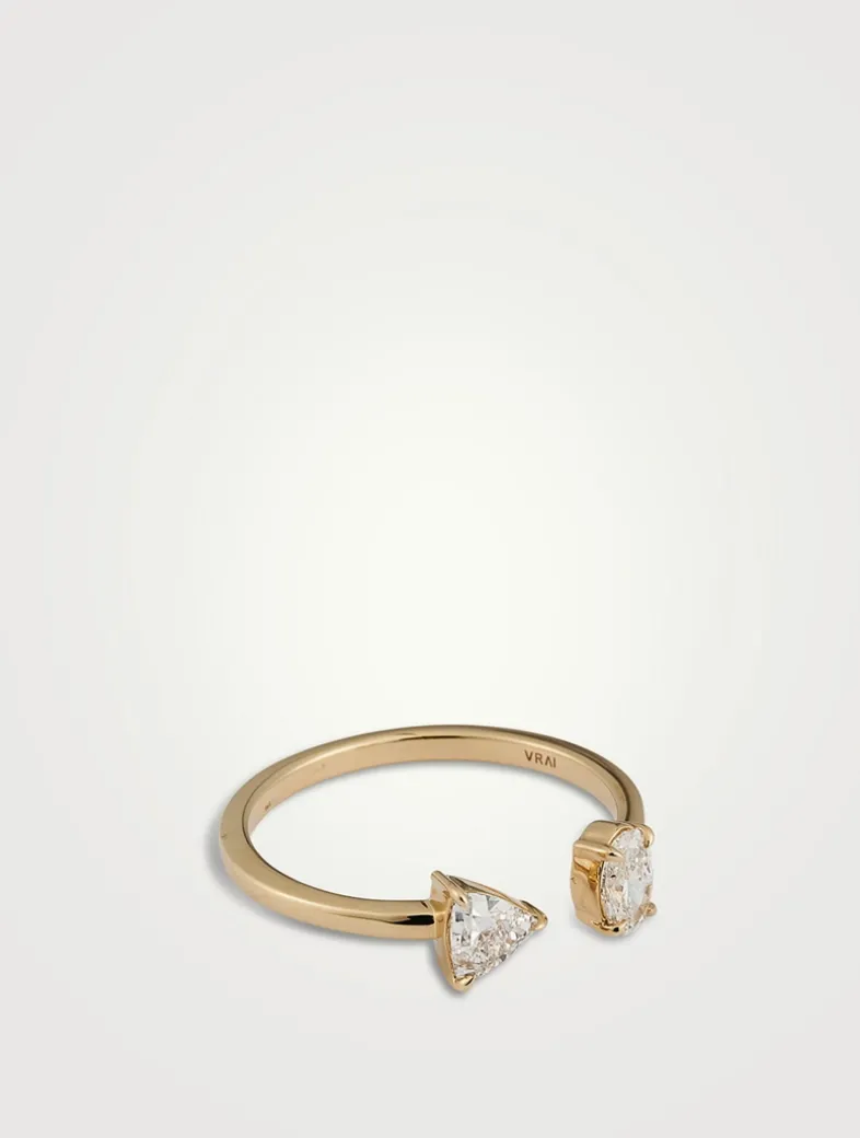 Embodying the unrivaled beauty and brilliance in dichotomy, VRAI’s Mixed Cuff Ring pairs a sustainably created diamond oval and trillion together in perfect harmony. Emanating light from alternate forms, each distinct design highlights the complementary strengths of your bond and shines as a symbol worn solo or stacked.