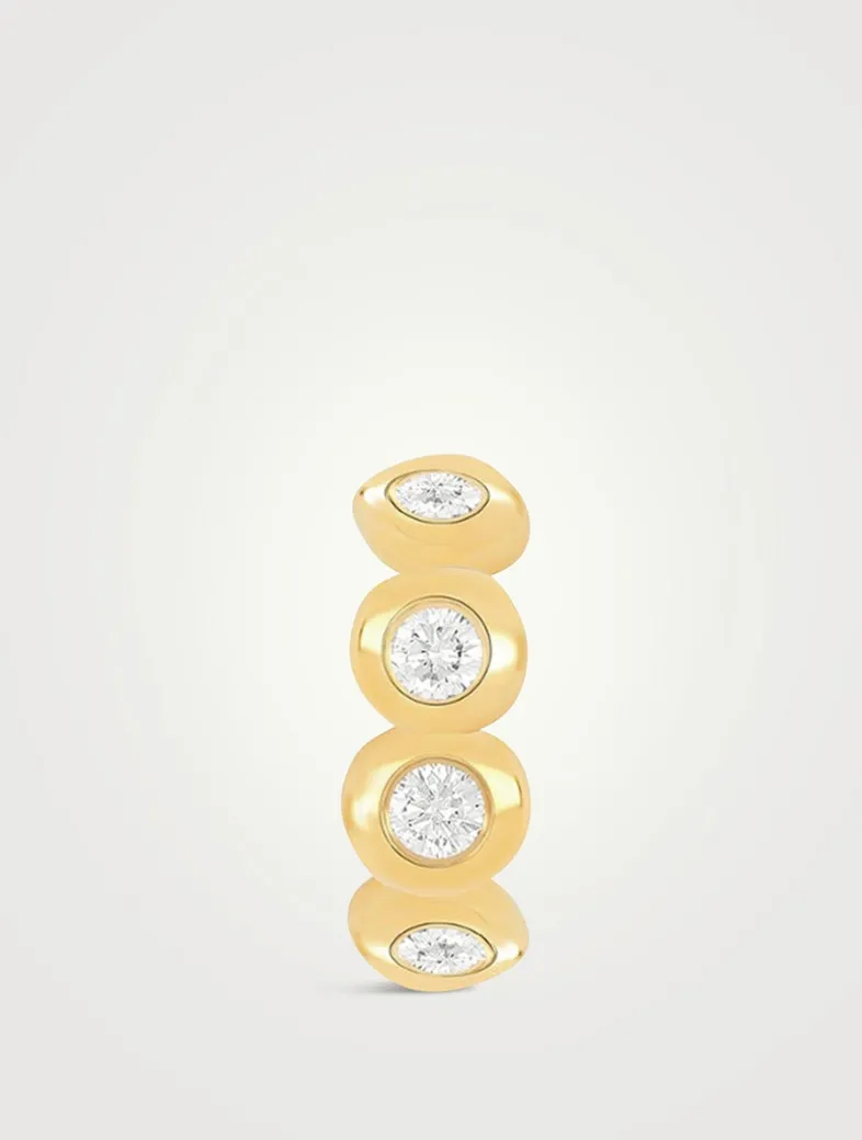 This single hoop earring features four bezel-set diamonds, giving it an organic pillow-like shape.