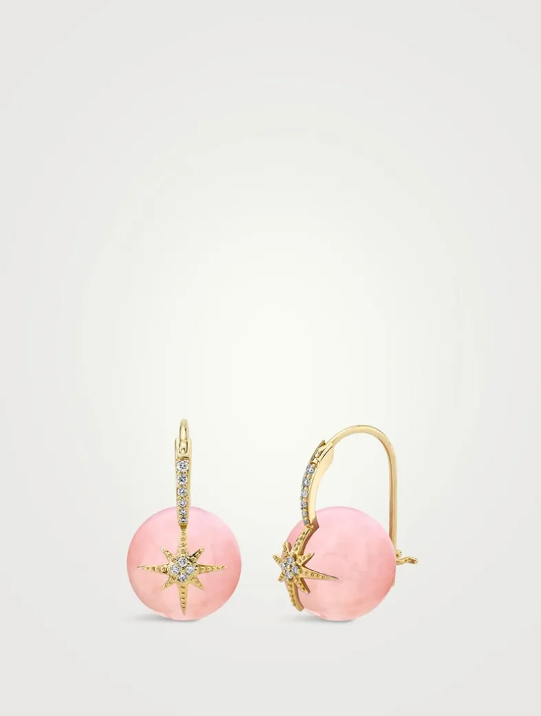 14K Gold Pink Opal Starburst Bead Earrings With Pavé Diamonds