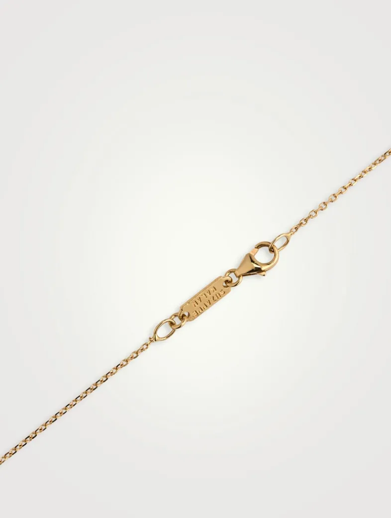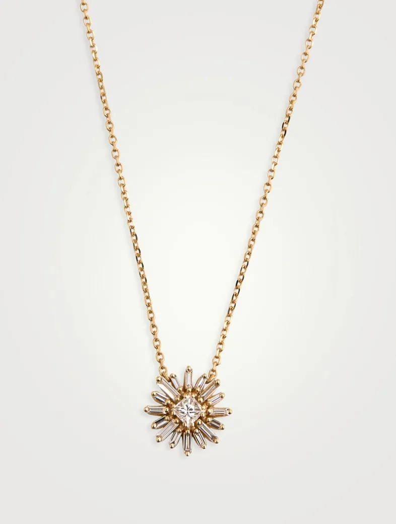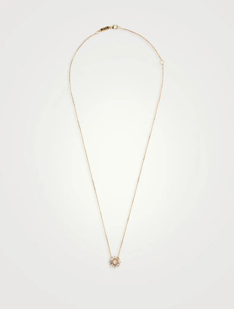 This adjustable chain necklace features a flower pendant with baguette-cut diamond petals and princess-cut diamond centre.