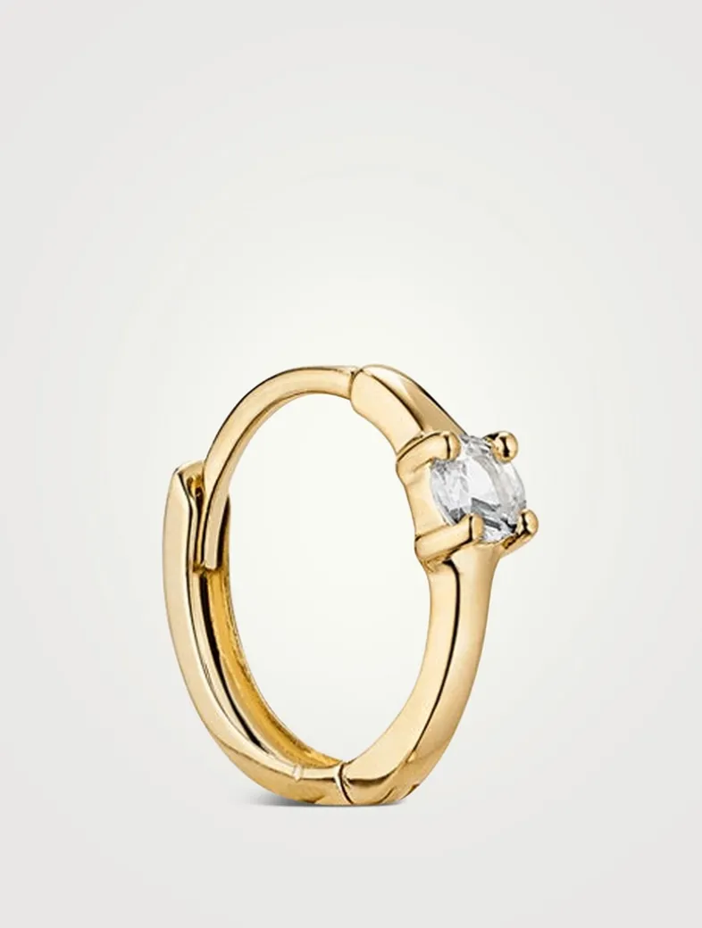 A colourful update to Mejuri’s classic single mini hoop. The hinge clasp makes it easy to wear and put on. This is their lightest hoop, perfect to wear every single day. Sold individually.