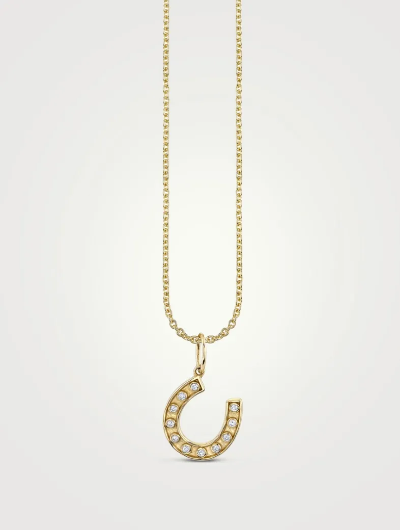 Made with a classic chain, this necklace features a lucky horseshoe pendant with bezel-set diamond accents.