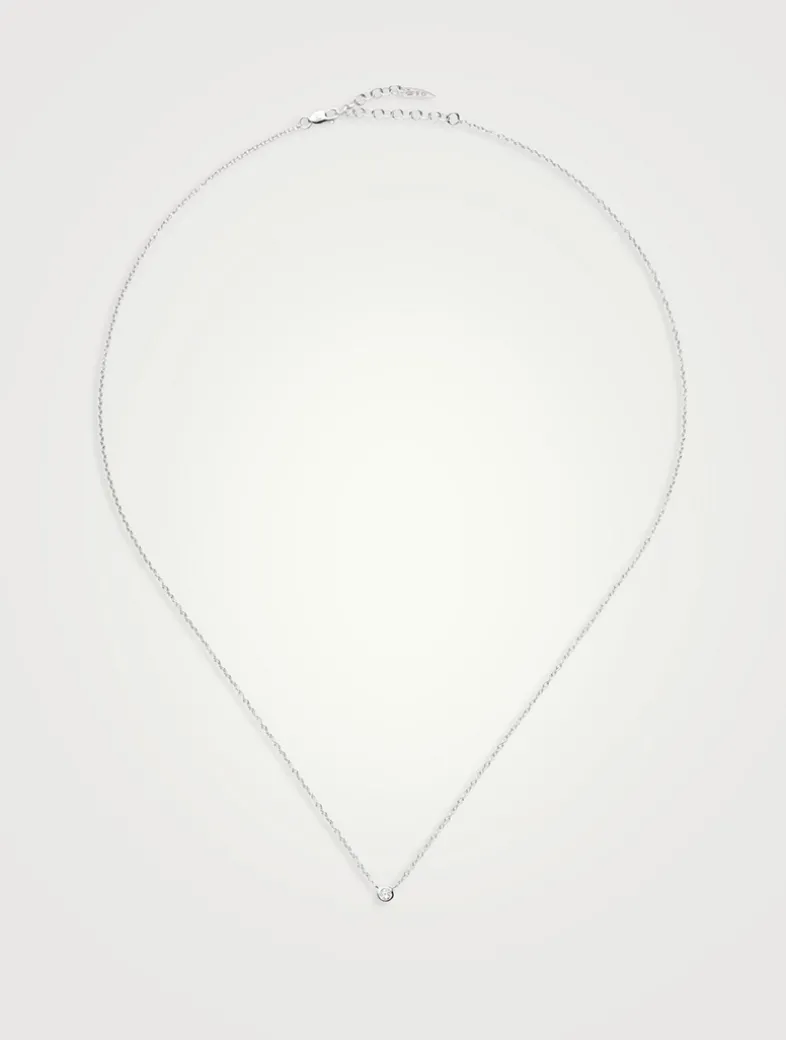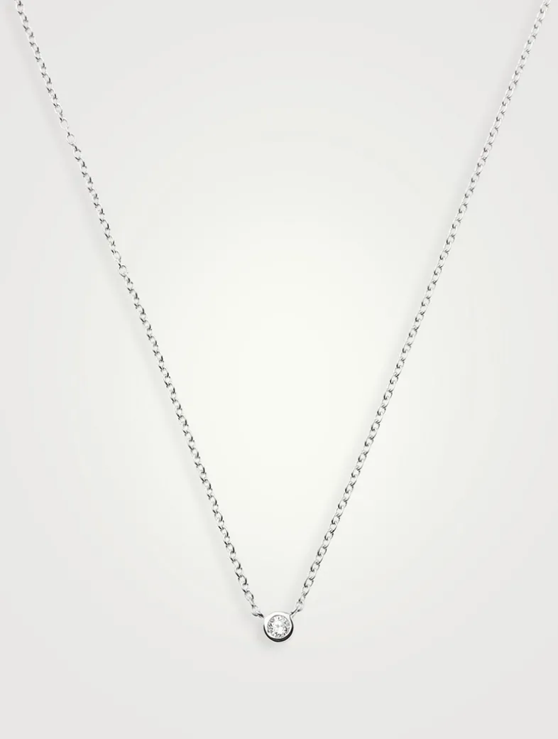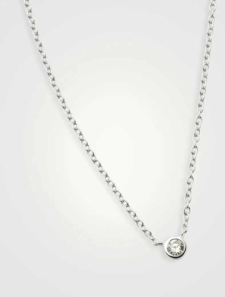 This timeless necklace features a floating solitaire diamond in a bezel setting on a classic 14k solid white gold chain. Wear solo or layer with more fine chains.