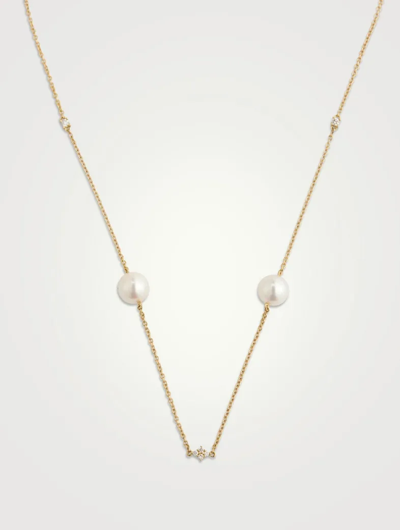 Comprised of timeless, jewellery box staples, our Classic collection is designed to last through the generations. Featuring lustrous Akoya pearls and scintillating diamonds set on a delicate 18k white gold chain, this necklace is elegant and sophisticated.