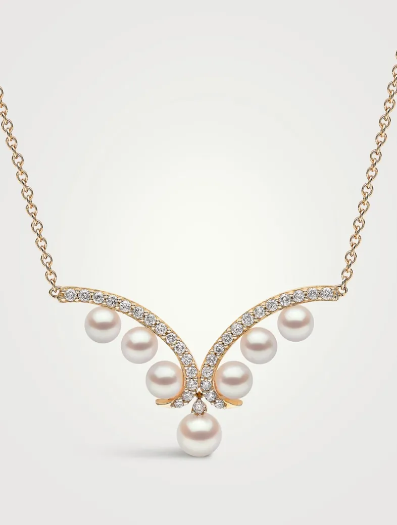 18K Gold Akoya Pearl And Diamond Necklace