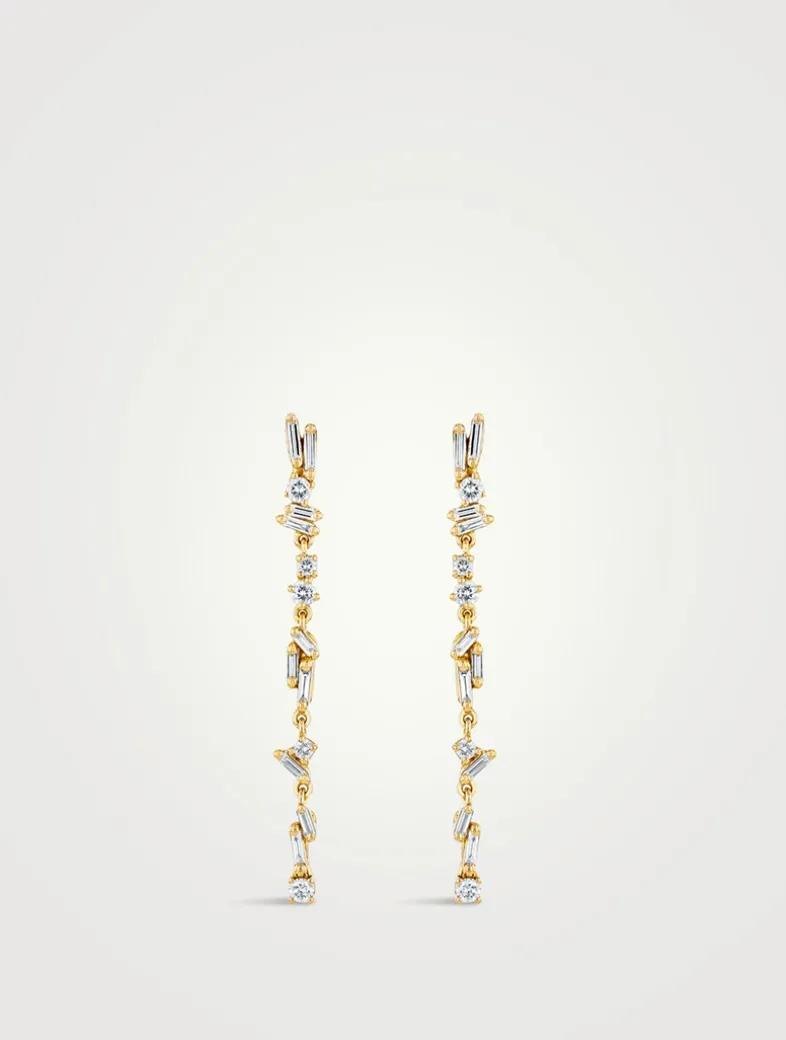 Crafted in 18k gold, these exquisite drop earrings are the perfect blend of elegance and sparkle. Set with a mix of round and baguette diamonds in the brand’s timeless Fireworks design.