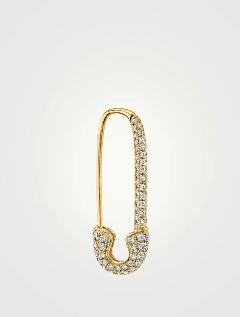 Accented with sparkling pavé diamonds, this single earring is designed in a signature safety pin shape.