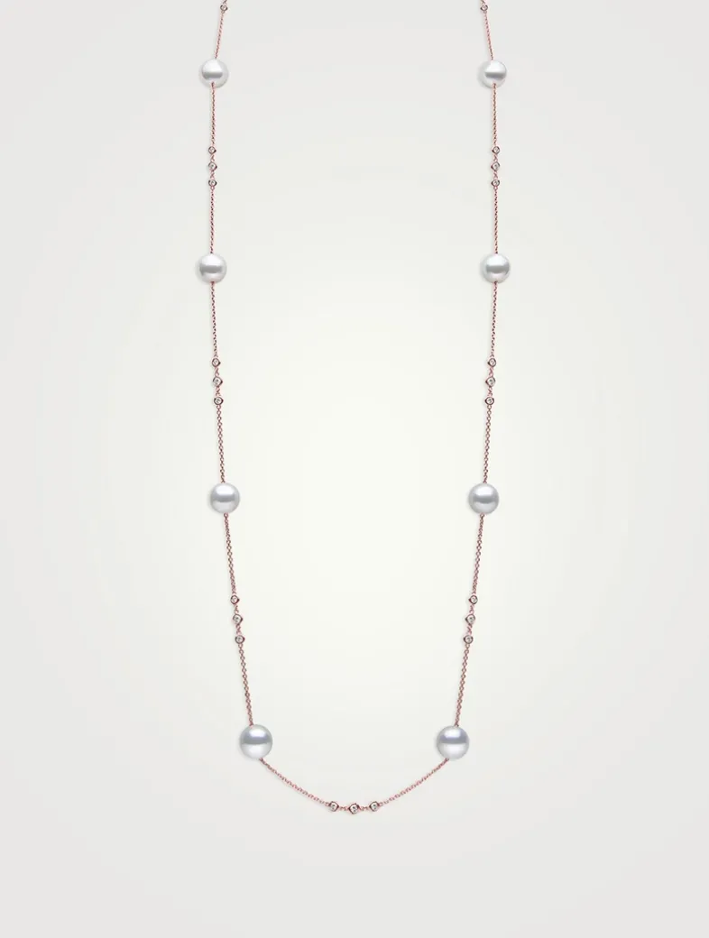 18K Rose Gold Akoya Pearl Necklace With Diamonds