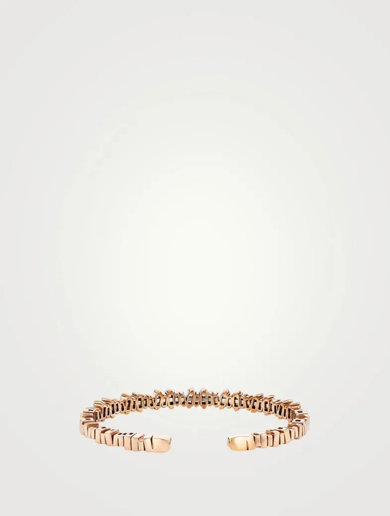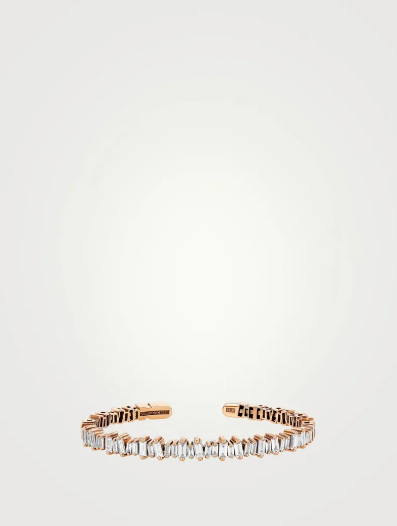 Featuring a striking 2.15 carats of baguette white diamonds, expertly handcrafted with 18k spring gold wire. This bangle combines flexibility with ease of wear, effortlessly slipping on and off while maintaining its elegant shape.