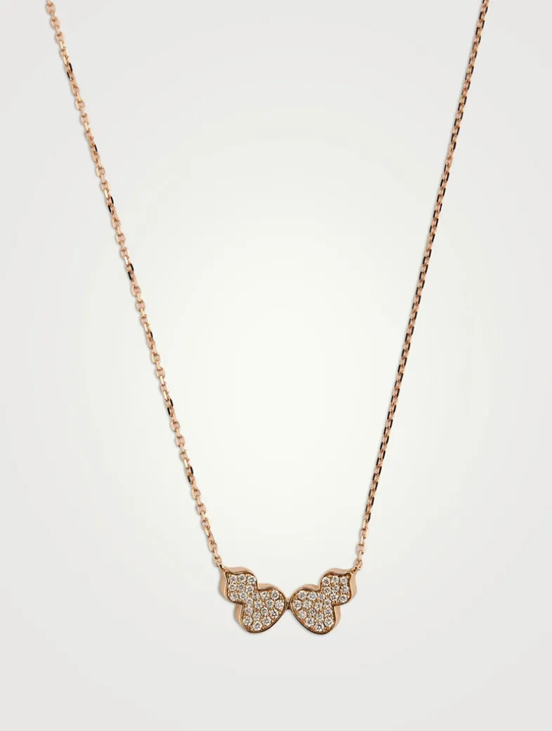 Echoing the curves of the lucky number 8, Wulu is the most powerful symbol of good fortune and positive energy in China. Crafted with a classic chain, this necklace features two mirrored Wulu pendants both set with sparkling diamonds.