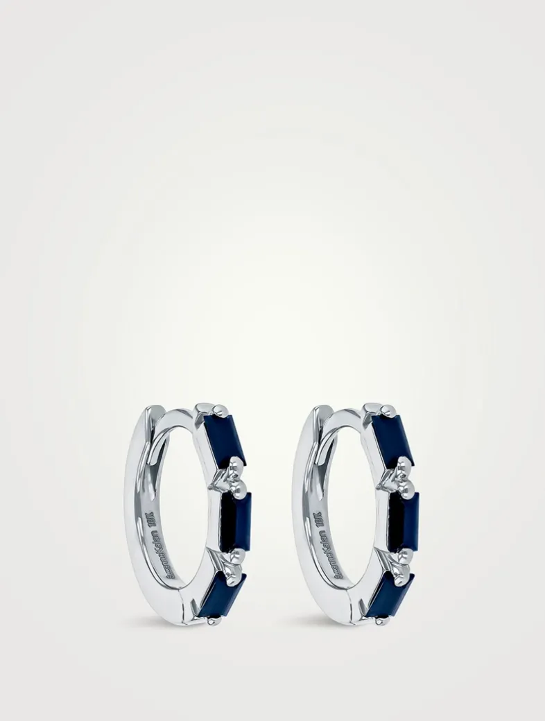 Crafted in white gold, these earrings feature dazzling dark blue sapphires, perfect for adding a luxurious touch to any outfit. Comfortable for daily wear and versatile for any occasion.
