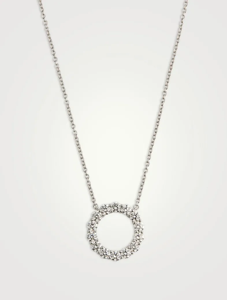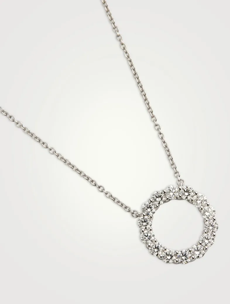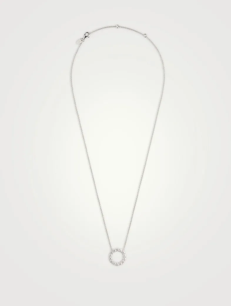Skillfully crafted in 18k gold, this adjustable chain necklace features a circular pendant of sparkling diamonds.