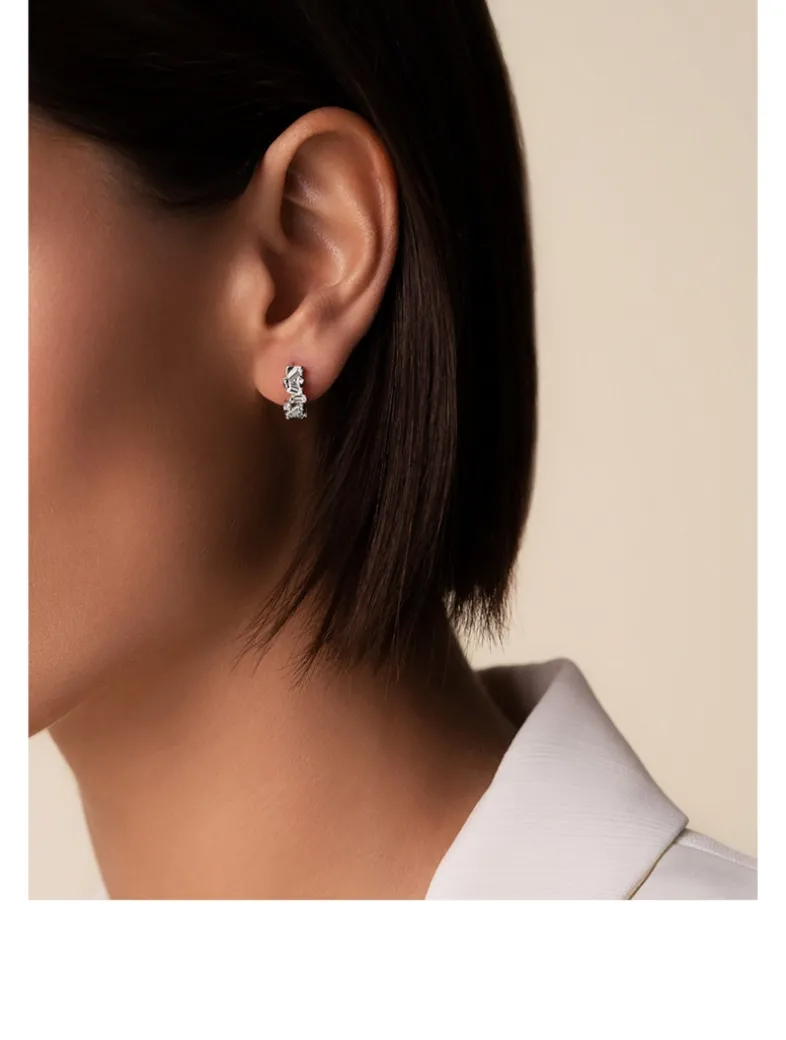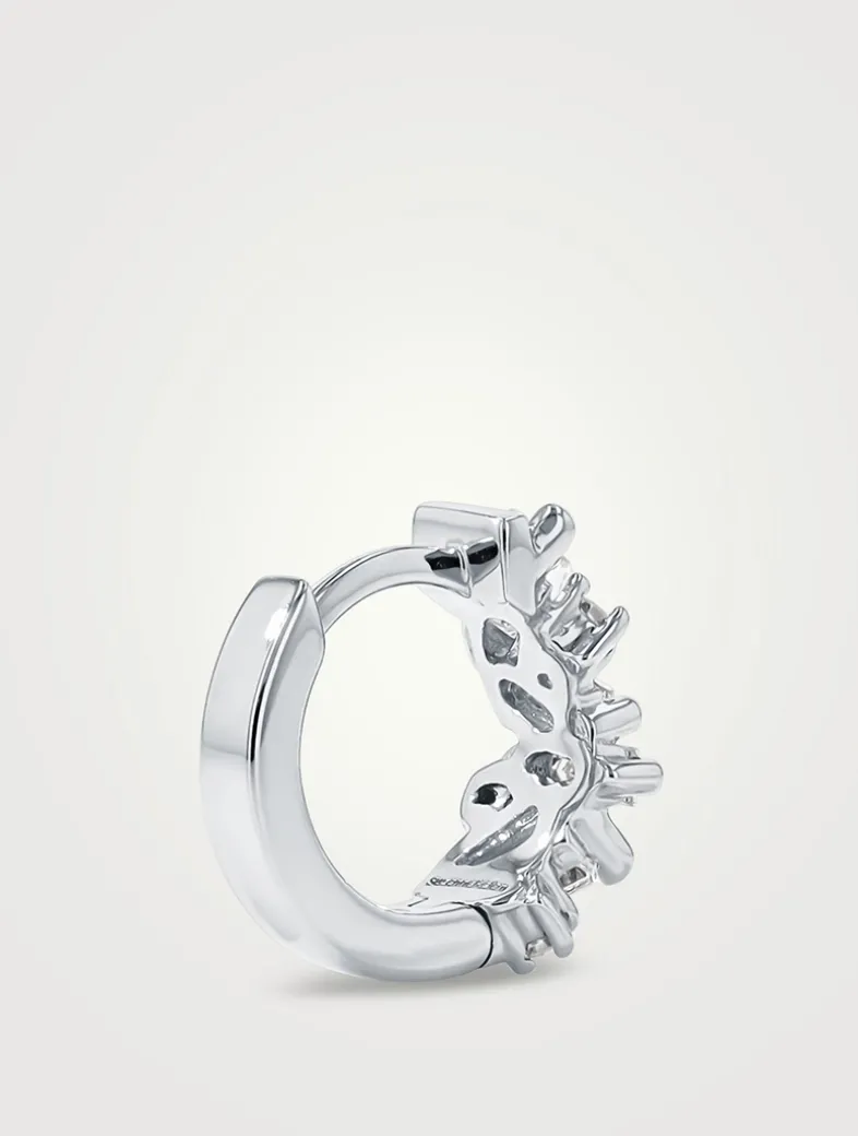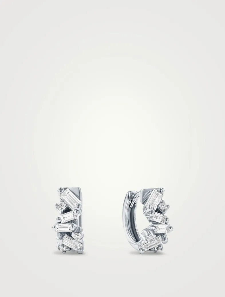 Comfortably designed for daily wear, these earrings are crafted in white 18k gold. From the Frenzy collection, these huggies feature a dazzling blend of baguette and round white diamonds.