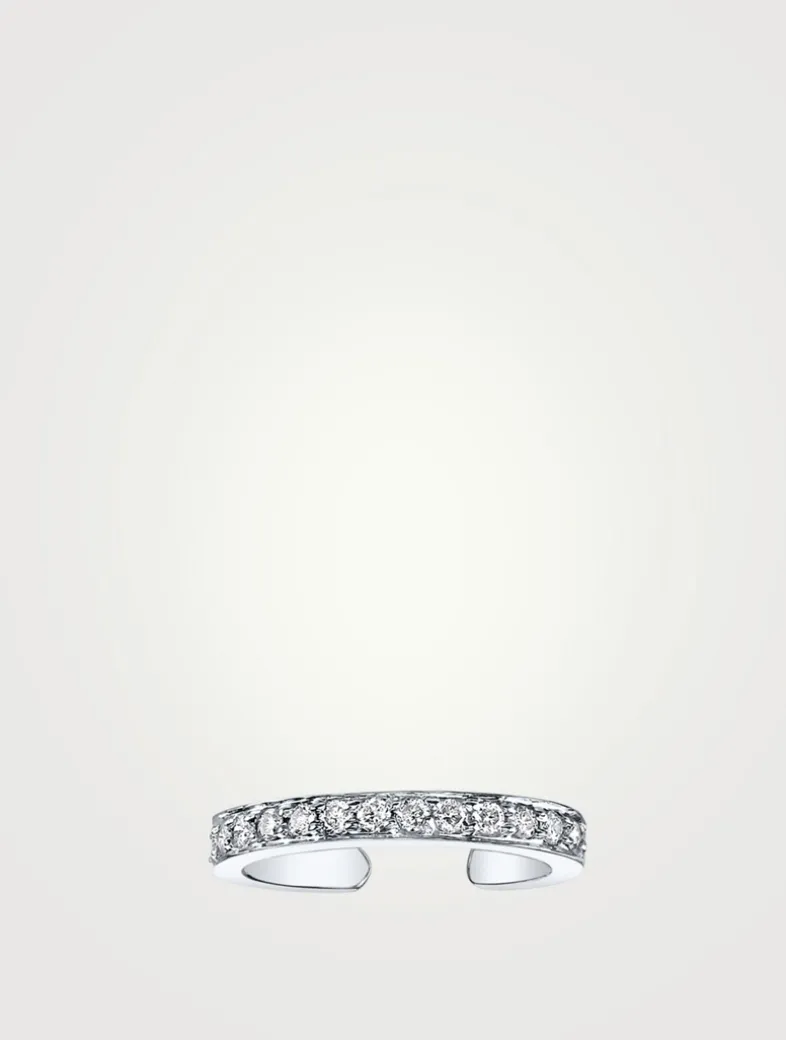 18K White Gold Single Row Ear Cuff With Diamonds
