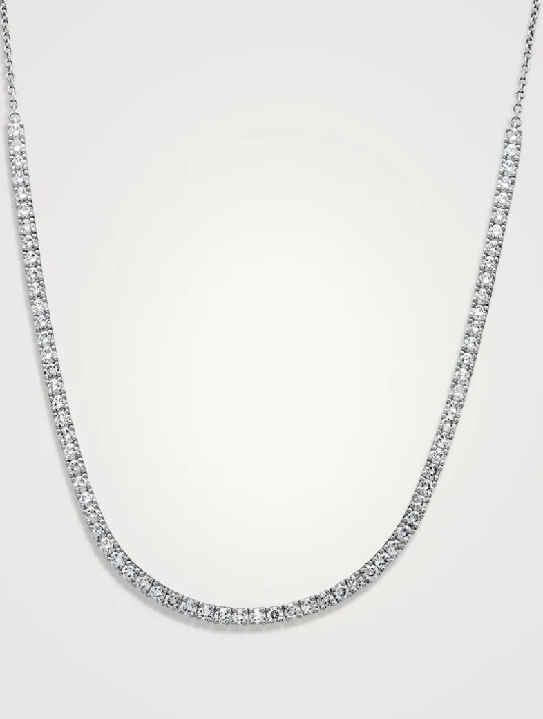This dainty chain necklace features a line of sparkling diamonds in four-prong settings.