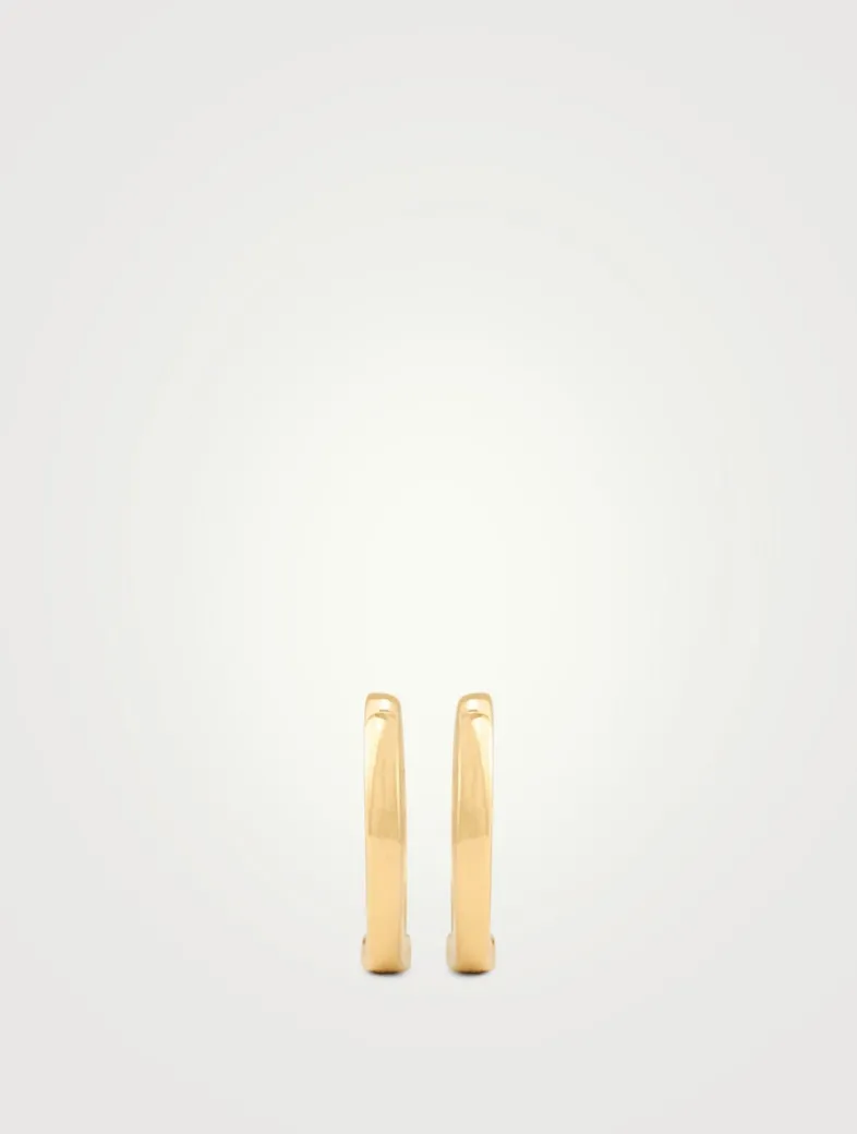 Cast in 18k gold, these yellow gold huggie hoop earrings are feature a classic design.