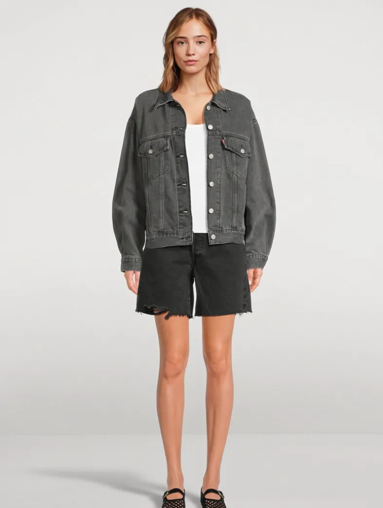 Modelled after the 501® Original jeans, these Mid-Thigh Shorts were made with an iconic vintage-inspired fit, a flattering high rise, and a longer inseam. Crafted from non-stretch denim with a raw-edge hem.