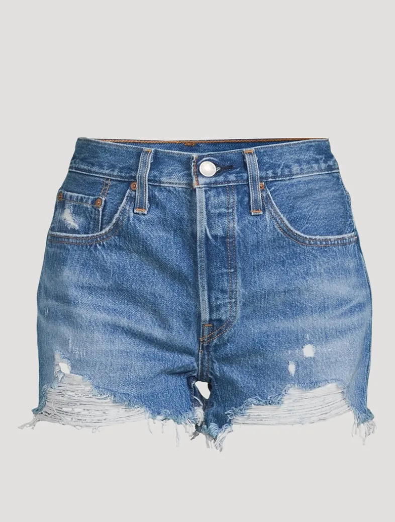 An iconic style that defines your waist and hugs you in all the right places, the 501® Shorts blend with your personal aesthetic for all-around wear. Now with a waist-defining high rise and a vintage-inspired fit. Features a chewed hem and is finished with light destruction.