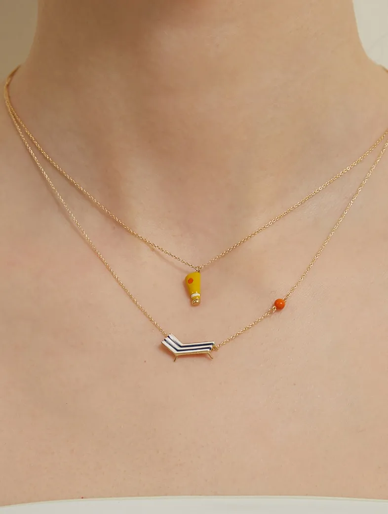 Set on an adjustable rolo chain, this necklace features a handpainted enamel deck chair pendant.