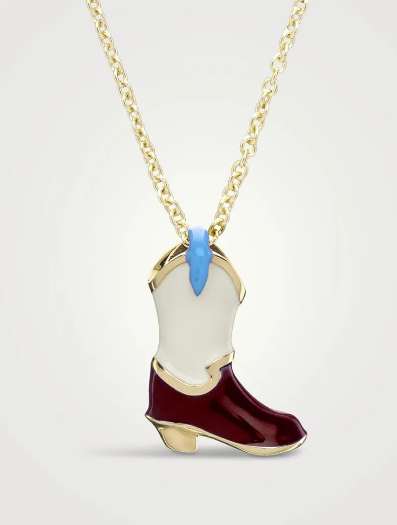Set on an adjustable rolo chain, this necklace features a handpainted enamel cowboy boot pendant.