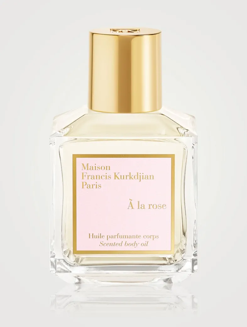 À la Rose scented oil, held in the House’s iconic glass bottle, is composed of sweet almond, macadamia, virgin argan and apricot kernel oils.