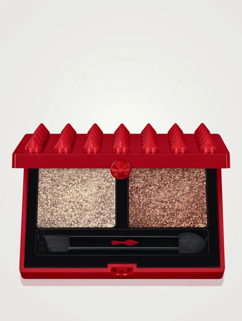 The new sparkly duo eyeshadow palette adorned with red spikes to magnify the gaze with light and shadow. Two new ultra-sensorial, highly pigmented creamy textures that glide on evenly, blend easily, and layer effortlessly. Two new mesmerizing harmonies in a sparkling multidimensional finish, to create a variety of looks, from sheer-shimmer to very-glitter that lasts for hours on end.