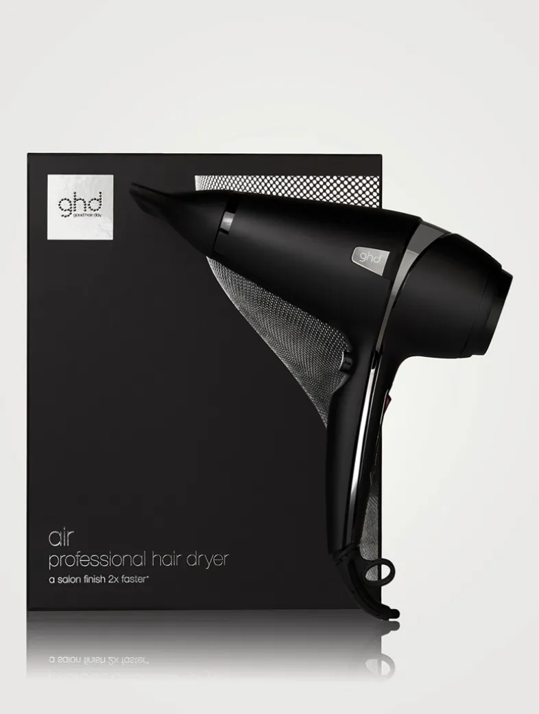 ghd 20 Years of Hair-itage – loved by beauty enthusiasts, endorsed by stylists. The award winning air® professional hair dryer in matte black, featuring a salon strength motor for super-fast drying and ionic technology, gives you a smooth salon-style finish in half the time.