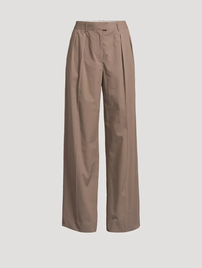 Made in smooth Pima cotton, this tailored trouser is cut with a low-rise, straight-leg silhouette. Featuring front double pleats, these pants are finished with belt loops, side welt pockets, and a single welt pocket on the back.