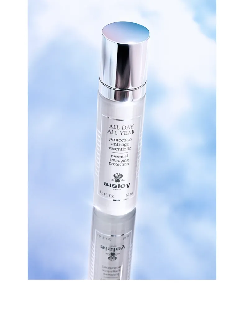 All Day All Year is the perfect day care product, supporting the skin by acting as a global protective shield, to keep the skin looking younger. When designing All Day All Year, Sisley’s Laboratories studied the internal and environmental factors to which we are exposed over our lives. These factors are grouped together under the scientific term exposome, which encompasses pollution and cigarette smoke in particular. The complex and highly concentrated formula of All Day All Year protects the skin from aggressors that can cause premature aging and enhance its self-defence power thanks to two complementary physical and biological shields. Its comfortable and melt-in texture leaves a silky, non-shiny finish on the skin and allows make-up to be applied soon after application. Its glass bottle has been designed to be recyclable, in particular through a removable pump and the use of glass compatible with recycling technologies.