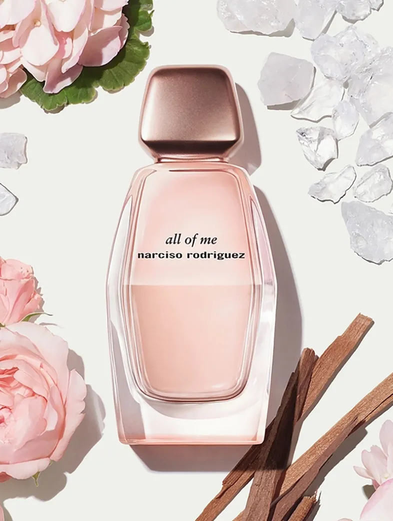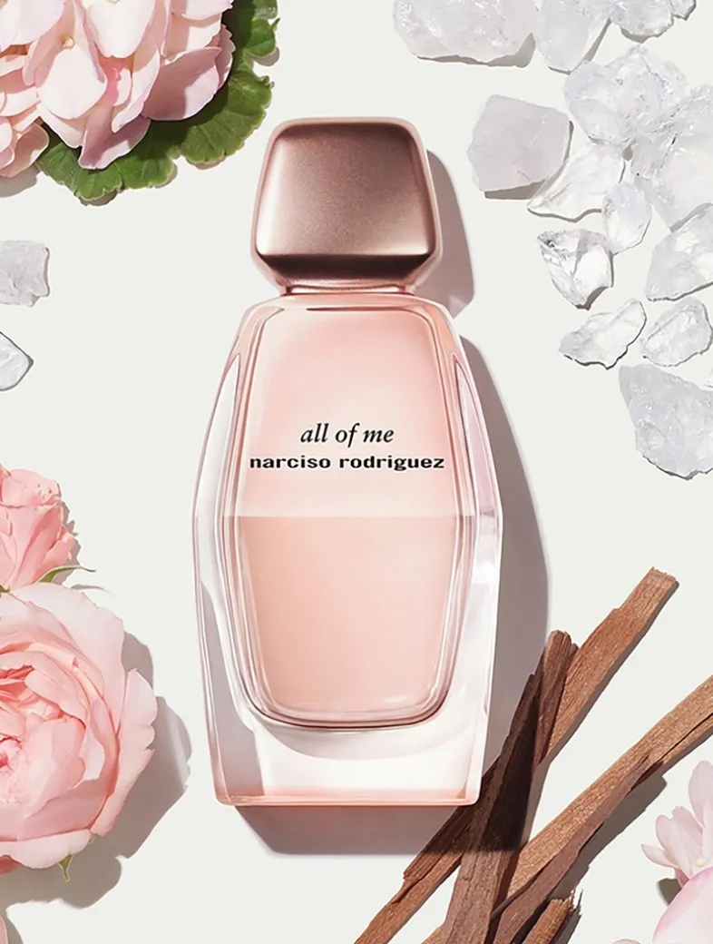 By combining the iconic scent of precious rose centifolia with an unexpected note of geranium bourbon, an ingredient typically only found in men’s fragrances, all of me transcends the codes of perfumery to create a prismatic and multi-facetted perfume: a floral like no other. The striking duet of rose and geranium is combined with essence of magnolia, powdery black iris and bewitching tuberose to form a kaleidoscopic blend of florals that unfurls to a heart of delicate accord of milky-white muscs. These creamy, second-skin muscs are an addictive evolution of the rare musc accord that is the signature of all narciso rodriguez fragrances. Six different musc notes are blended together, each one bringing a distinct dimension to the scent – a softness, a luminosity or a rich woody texture. Milky notes are fused with these muscs to create a new creamy sensuality – a unique milky-musc accord that completely reinvents the iconic narciso rodriguez musc. In the base of the fragrance, the lasting embrace of warm sandalwood and velvety amber notes creates a rich and enveloping trail that lingers on the skin.