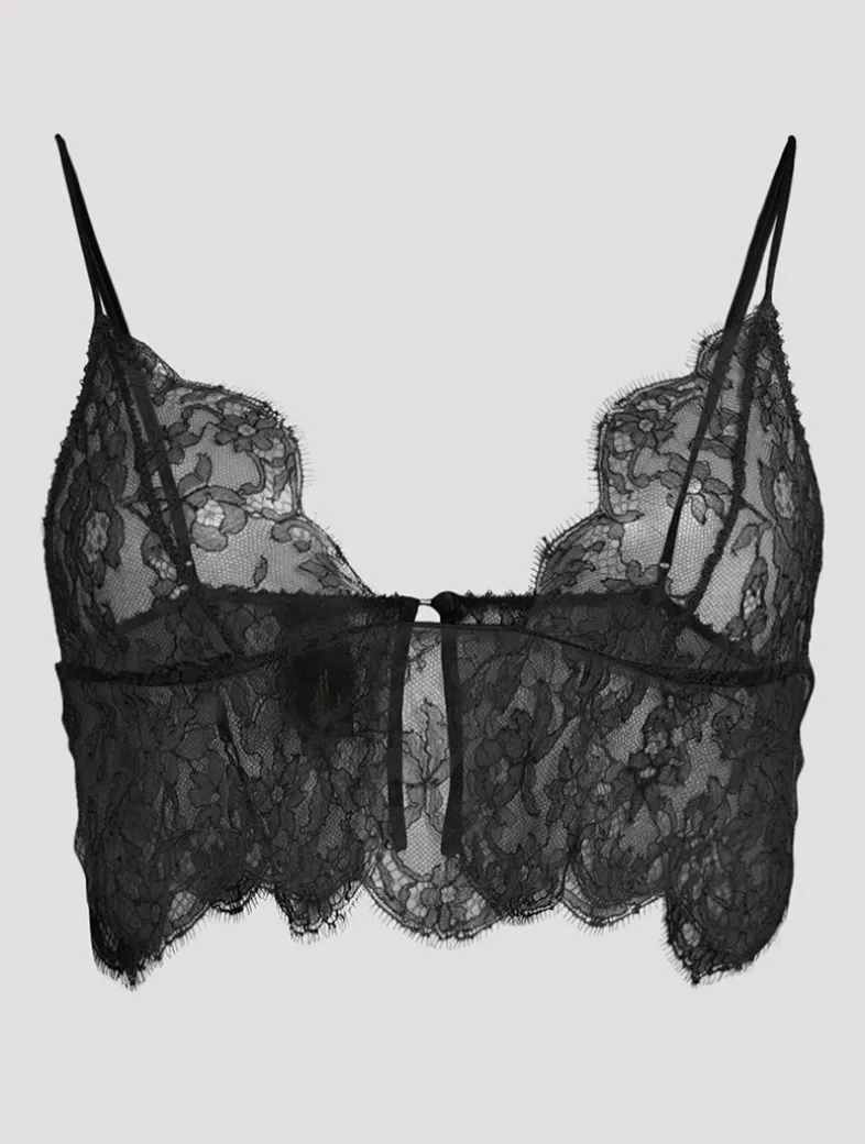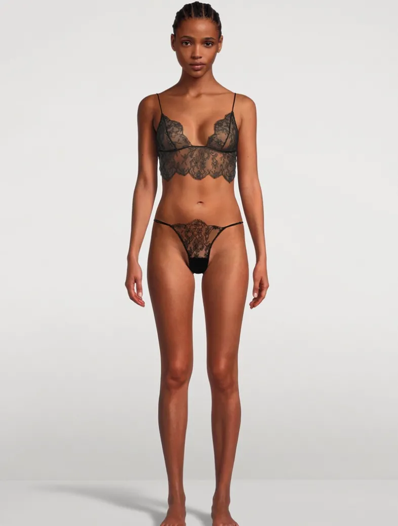 Channel Kiki’s Parisian-chic sensibility in this All Over Lace Longline Bra. The soft-cup style is crafted from French leavers lace with silk charmeuse trim. Adjustable shoulder straps ensure a perfect fit while a singular button closure is a playful finish.
