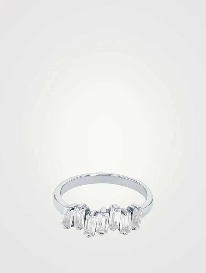Inspired by the vibrant colours and unique shapes found in the architecture of the Amalfi Coast, the Amalfi collection uses a variety of gemstones, each with their own unique shape and hue. This polished band features baguette white topaz stones in an uneven setting.