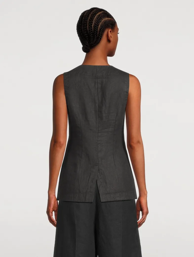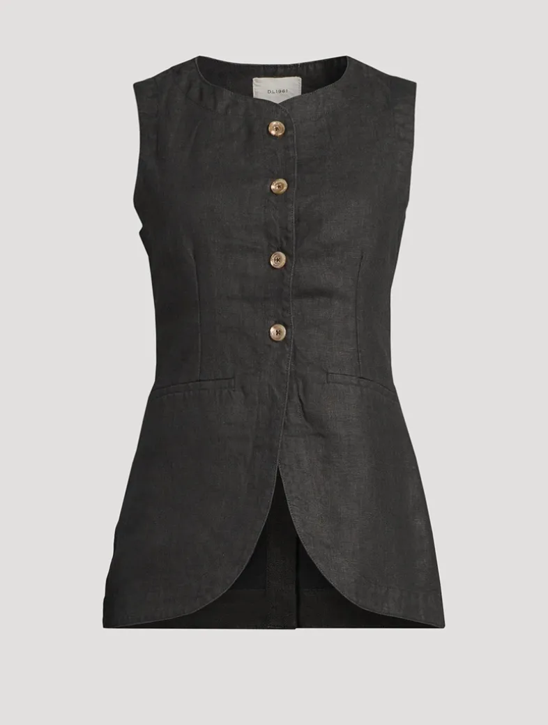 The Amalie is a highneck, button-up top with a vent at the rear. High quality with impeccable drape, DL1961’s luxe linen pieces are made with 100% natural linen fibers and made to keep you comfortable in high temperatures.