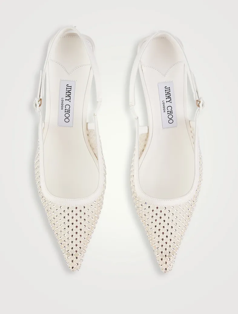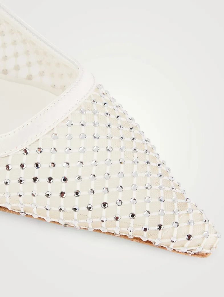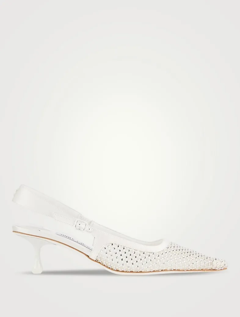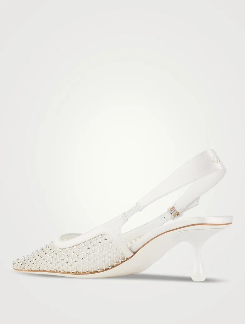 The Amel elevates the timeless slingback silhouette with a graphic drop heel and square-cut vamp. Crafted from crystal-embellished satin, this point-toe pair is a modern complement to your wardrobe. It features an adjustable slingback strap and is set on an ultra-wearable low heel.