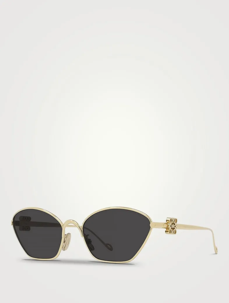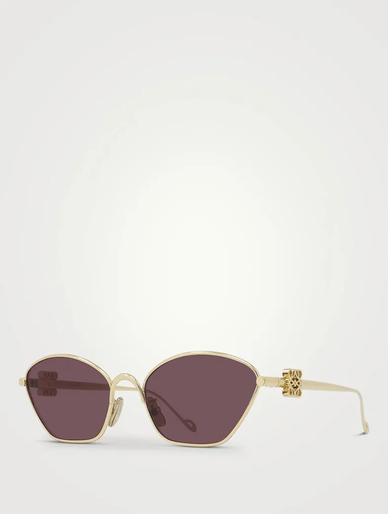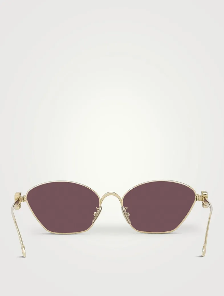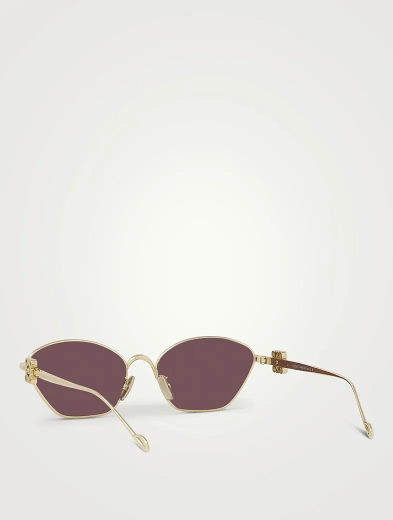 Made from metal in a unique geometric shape with bevelled edges, these cat eye sunglasses feature colourful lenses and 3D Loewe Anagrams on the arms.