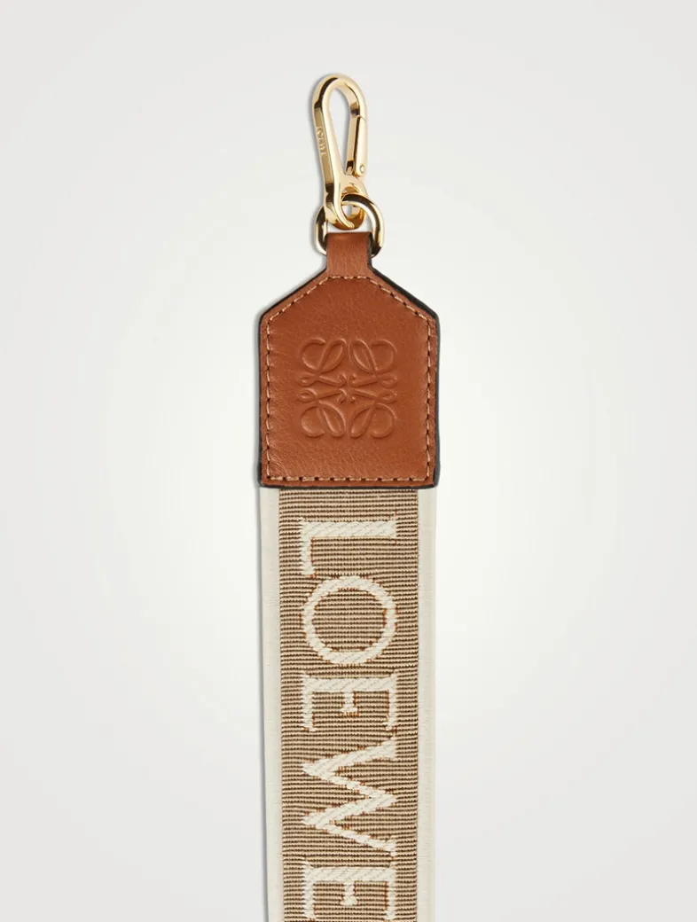 A detachable jacquard strap trimmed with leather and stitched with a repeating LOEWE pattern on one side and a repeating Anagram pattern on the reverse. With hook fastenings and a slider in a polished finish.