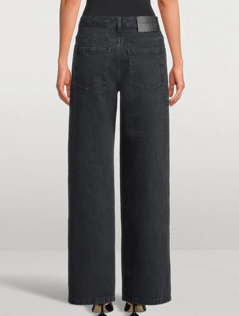 Designed to a mid-rise waist, these baggy jeans are crafted in medium-weight washed cotton denim. They are adorned with tonal Anagram embroidery on the knees.