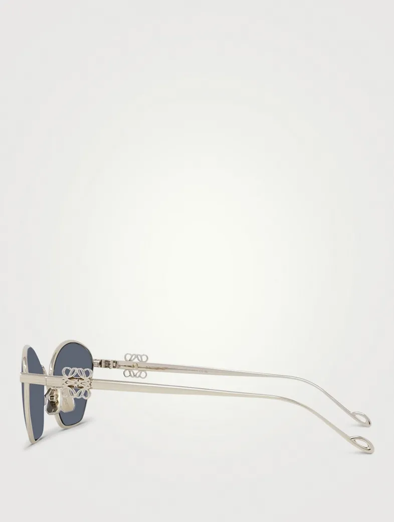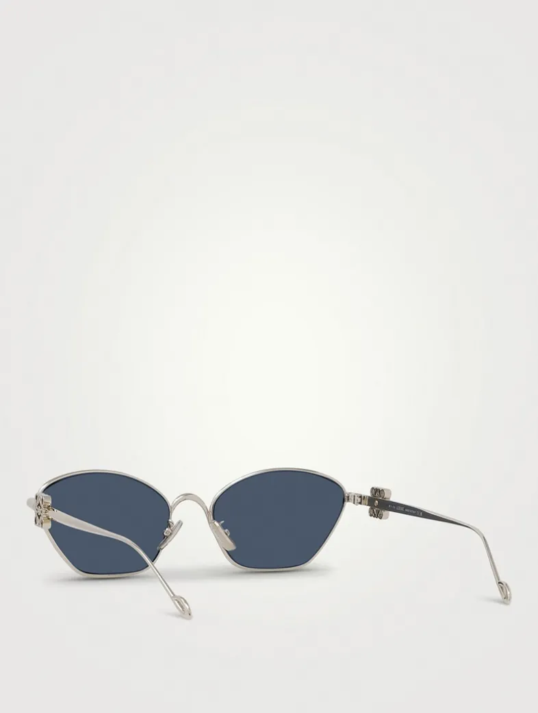 Made from metal in a unique geometric shape with bevelled edges, these hexagonal sunglasses feature colourful lenses and 3D Loewe Anagrams on the arms.