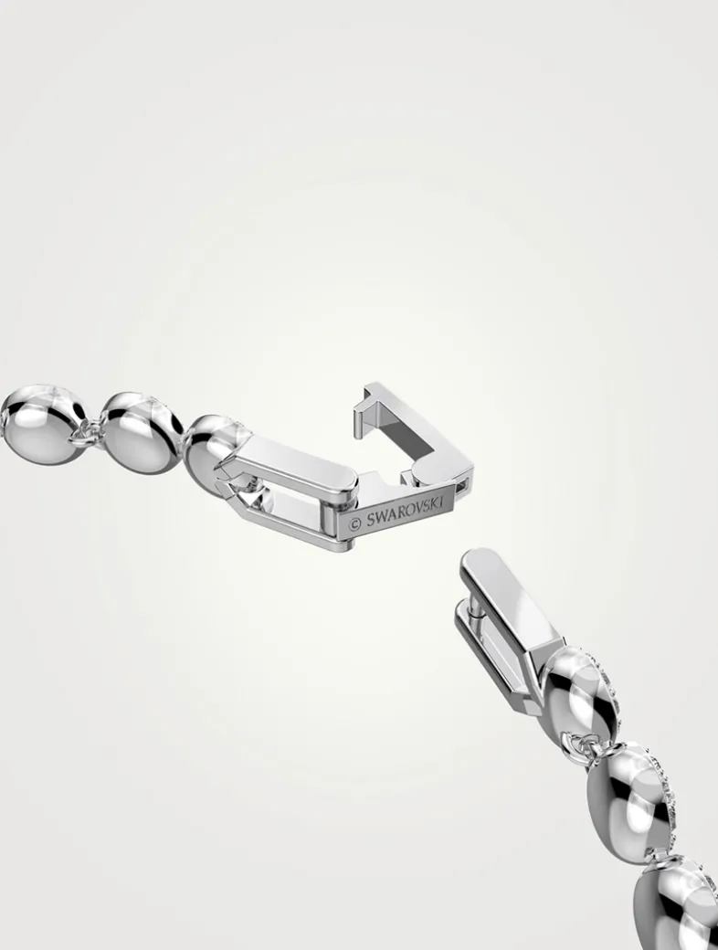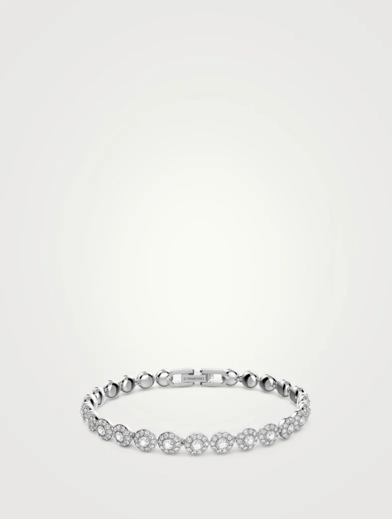 From the Angelic collection, this delicate bracelet features round cut crystals set with a halo of pavé stones surrounding. This station-style bracelet is rhodium plated to ensure it remains sparkling.