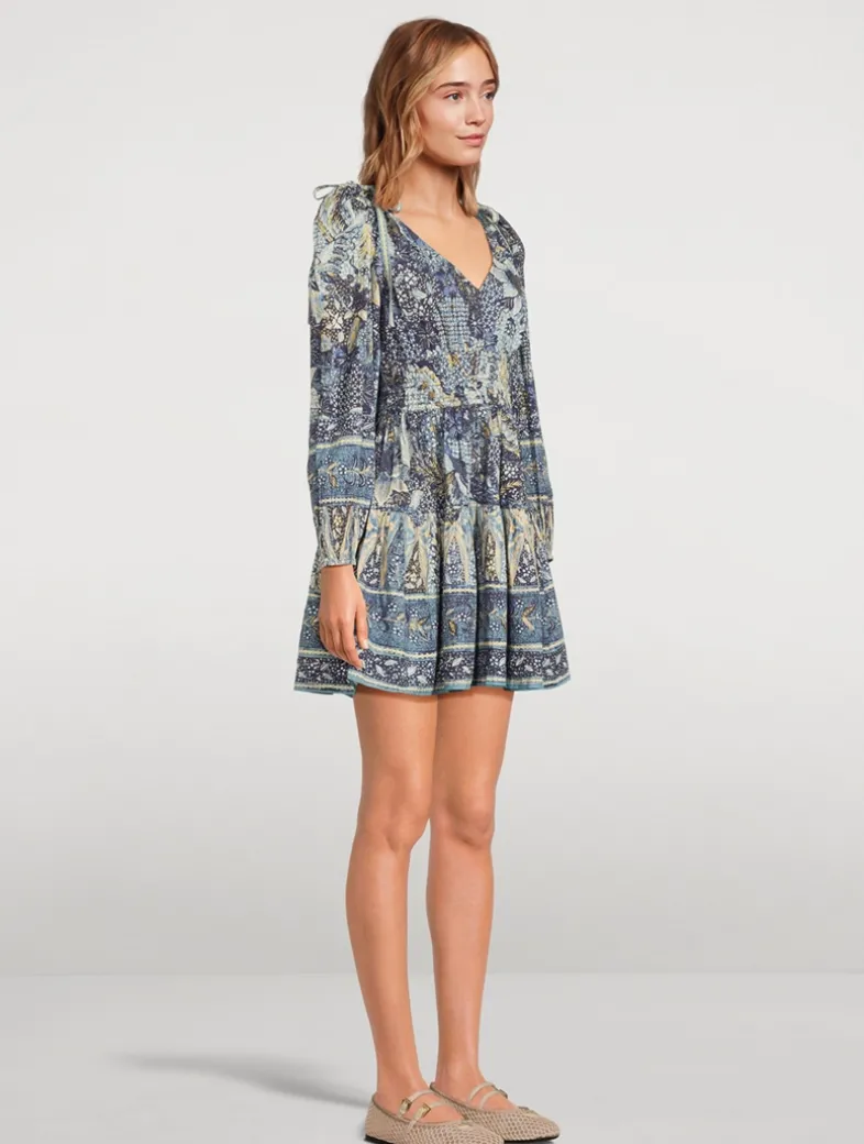 The Anika Dress is exquisitely patterned with botanicals inspired by a vintage batik print, uniquely layered atop softly striped graphics. Arriving in a lightweight cotton blend, this mini dress has fixed bows at the shoulders, an elastic waist, and is full of elegant volume at the long sleeves and mini hemline. It has side pockets and fastens with a concealed side zipper.