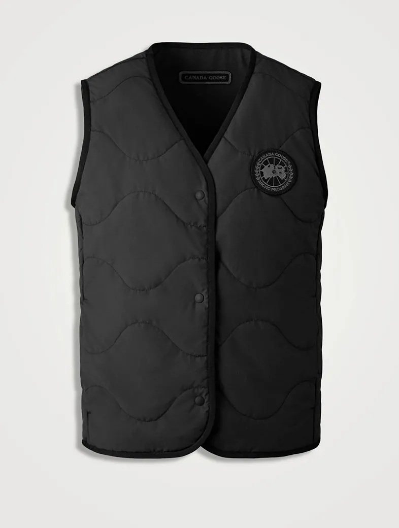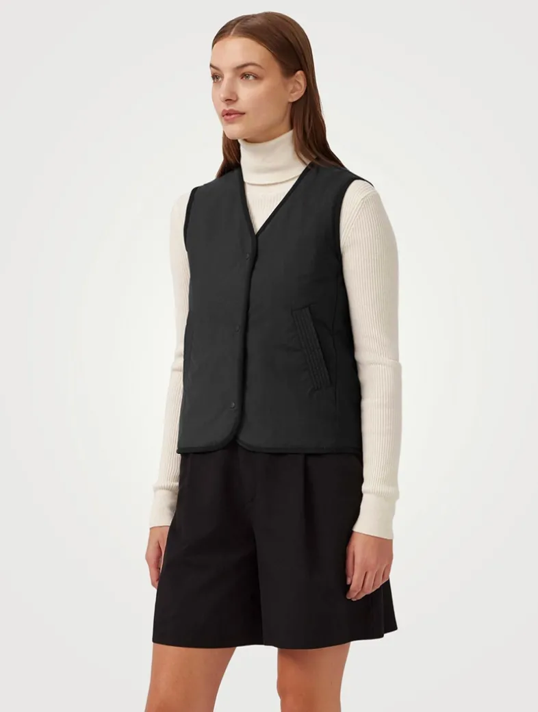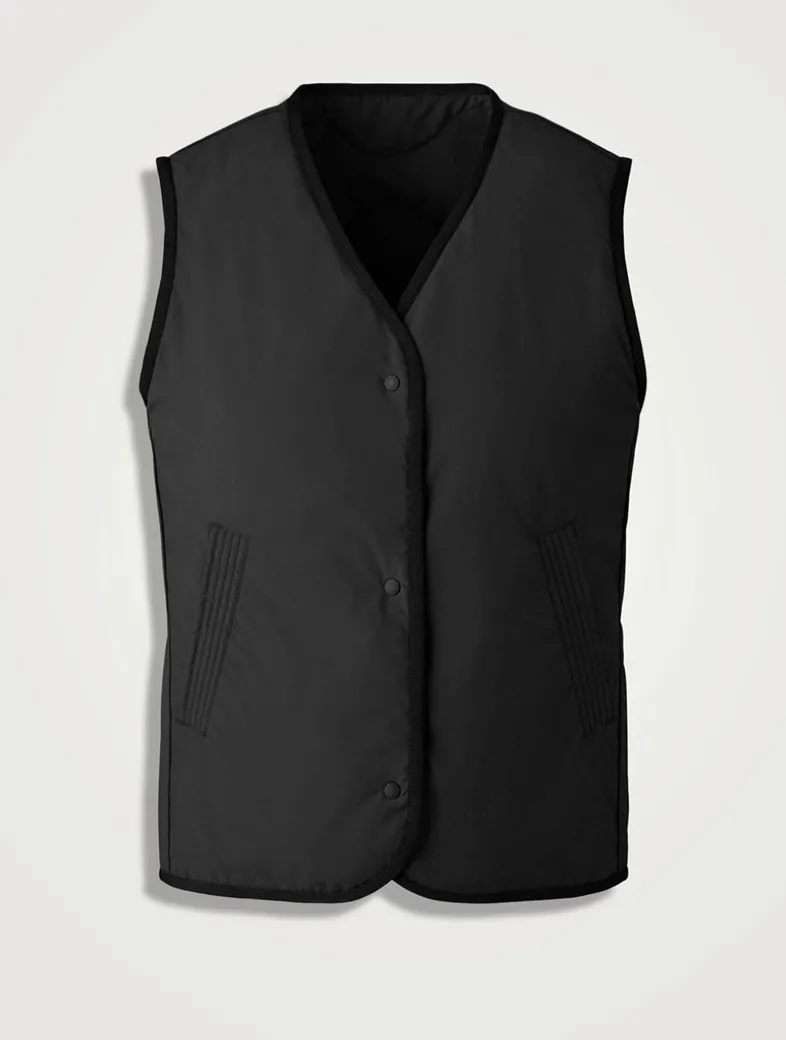 The Annex Liner is a lightly insulated, fully reversible vest with the option of heritage-inspired onion quilting reversing to a clean finish. With a high-low hem, snap-button closure, and relaxed silhouette, the Annex Liner is the perfect transitional staple. Material is certified to the Global Recycling Standard (GRS).